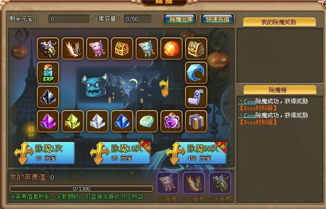 如果你想在网页版奇迹私服《网页版奇迹私服》中获得更多的宝石?那么,就来除魔吧!在这里,玩家们只要花费10元宝除魔一次就能得到一级宝石,多除多得,还有机会获得顶级坐骑、精灵族羽翼、超级宠物技能箱和BOSS材料箱等珍贵物品。